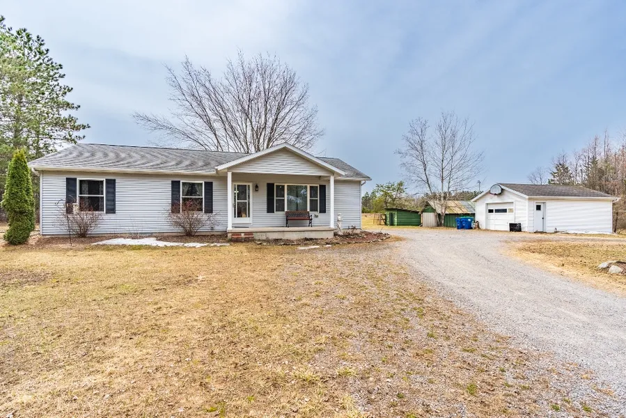 Welcome to the country!! If you’ve been searching for country living, here it is! With two acres, in the Town of Knowlton, built in 2010, this 3 bedroom, 1 bath, open concept ranch has a ton to offer! Enter the home through the side entrance and you will find the first floor laundry room, equipped with closet space & storage. Tile flooring runs throughout and into the open-concept kitchen & dining areas. Updated cabinets with peninsula, pantry and new backsplash are illuminated by track lighting. During the day, plenty of natural light fills the kitchen through the Sola-tube. A patio door in the dining room leads you to your maintenance-free, resin back patio where you can enjoy the beautiful, spacious back yard and all that nature has to offer. The living room features a big bay window and the covered-porch front entrance. The main bath boasts a large walk-in shower, tile floor and plenty of storage. Three bedrooms, with large closets, complete the main level. The lower level provides an egress window for you to create a space that is perfect for your wants & needs. This home features a geothermal heating system, making it very inexpensive to keep your home warm. There is also an owned water softener and sump pumps included with the sale. Amongst the circular driveway, there is a detached garage, metal storage shed, and chicken coop. You’ll appreciate the included Craftsman lawn tractor (with snowblower attachment) and cab enclosure, making this country home completely move-in ready!! Please note: the property was recently surveyed with stakes outlining the lot.