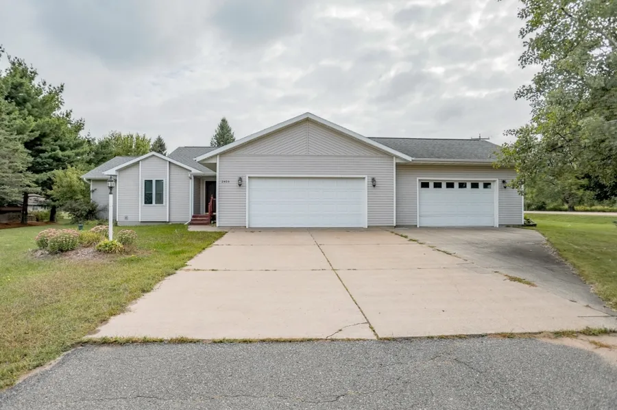 Prime location! This 3 bedroom, 2 bath ranch home sits at the base of Rib Mountain, walking distance from the popular Quarry Trail, 1-minute from Rib Mountain Golf Course, Granite Peak Ski Hill and more! Appealing exterior with 3-car capacity - great for extra vehicles / recreational gear (with secondary overhead door to the backyard), functional fenced-in area with ample yard space, seated on a 0.46 acre corner lot. Inside features a modernized, open-concept feel with new carpeting throughout the living area & hallway, new knotty pine accent walls, and great natural light throughout! Functional kitchen with ample cabinet space, included stainless kitchen appliances, center island and a spacious dinette area as well. Down the hall features 3 bedrooms all on the main level, one of which features a connected bath. Good closet space throughout. Plus features main level laundry (on the same level as all of the bedrooms). Unfinished lower level offering tons of potential for the new owner to finish a future rec room, bonus room, or potentially additional bedrooms with the addition of egress windows. Forced air heat, central A/C, water softening system and more. Located in the Wausau School District. Schedule your showing today!