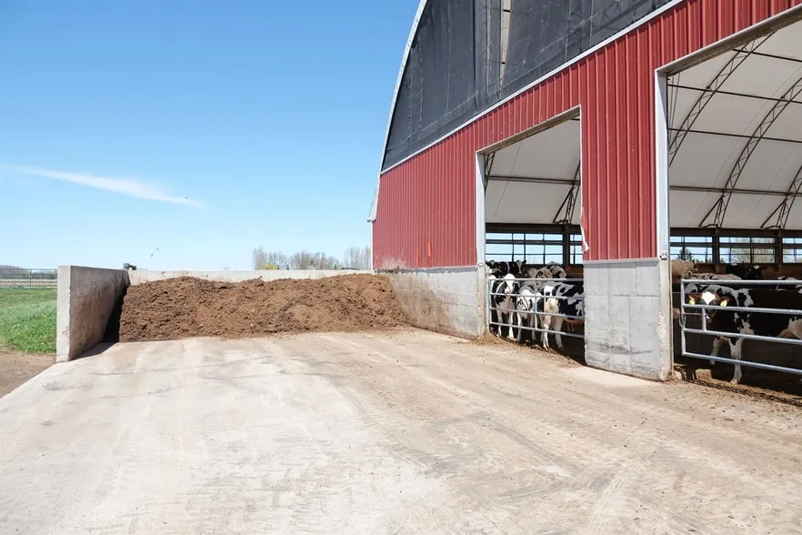 Heifer raising facility buildings: 62' X 210'-cover all type dome structure on concrete wall. Curtain walls, 6 wall fans & 7 ceiling fans. 28'X28' concrete pad on end. Center bunk feeder, headlocks. 50'X110'-Pole structure loose housing setup. Grooved concrete floors, curtain sidewall. Metal sided & roof. Center feeder. 100'X300'- Gravel pad for bag silo storage for approx. 7 bags, also a 2nd pad available. 40'X70'- Pole building used as Machine shed, gravel floor. 30'X64'-2 story barn set up various sized pens. Office room. Very picturesque facility. Seller currently is custom heifer raising. Seller also has machinery available.