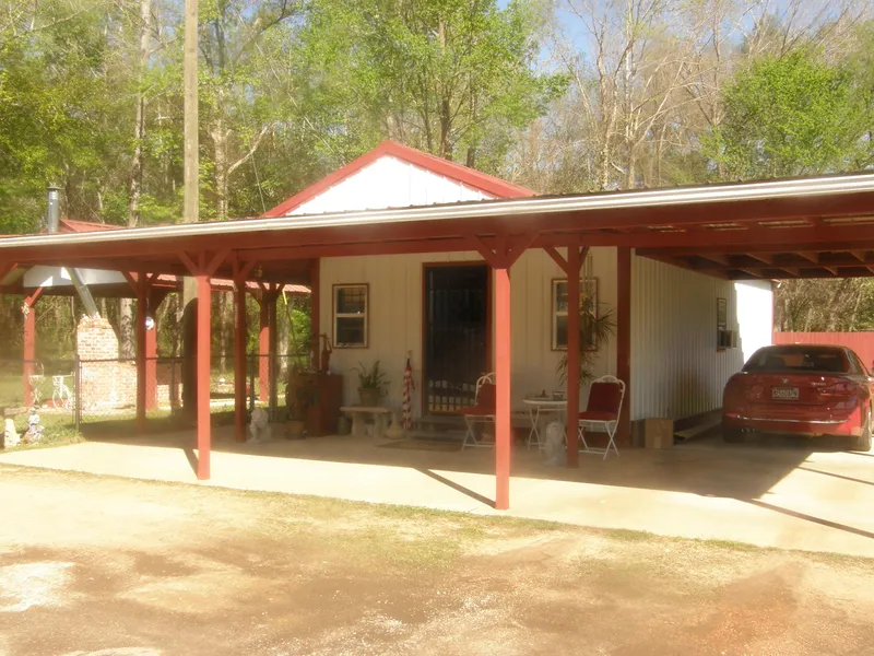 Are you ready to try Small House Living. This home is for you. Built in 2015 this well built home has a large open room, complete with kitchen. Wood floors, well insulated all metal construction including roof. The roof covers a carport on one side and creates a covered walk around on the front and other side. There is an additional shed and a covered fire pit BBQ area. This would make an excellent home, hunting cabin, or small business.