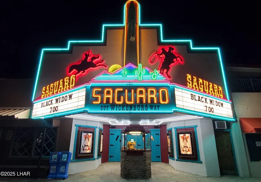 Saguaro Theater - Iconic Building & Real Estate For Sale A rare opportunity to own the Saguaro Theater, an iconic property with deep roots in Wickenburg, Arizona. While not officially designated as historic, the theater has been a cultural landmark for generations and is well-loved by the community. This offering includes both the building and the land, providing exceptional potential for the right buyer. The property features a 6,411 sq/ft building on a 9,528 sq/ft lot. The layout includes a vacant downstairs office with its own private entrance, offering an excellent opportunity for remodel and rental income. The upstairs portion of the building also presents potential to be transformed into office space or a residential apartment, creating additional revenue streams. Additionally, there is a 3,117 sq/ft parcel of land facing N. Valentine St., ideal for future commercial development. The current owner has preliminary plans to convert the office and upstairs areas into a restaurant concept, adding even more flexibility for future use. The Saguaro Theater can continue as a traditional theater or be creatively repurposed into something special for the Wickenburg community.