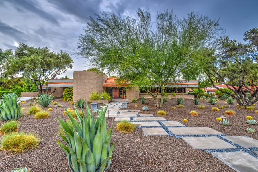 A Frank Lloyd Wright inspired home, this spacious 4 bedrooms, 4 full bathrooms home is nestled on a huge lot with horse privileges. Within the desirable Buena Vista Ranchos horse community and in a great South Tempe location in the Kyrene Schools District. A cook's dream kitchen with expansive island, pull-out drawers, granite countertops, salad sink, subzero built-in fridge, large walk-in pantry, KitchenAid dual ovens, Bosch dishwasher, Dacor 5 burner cook top, warming drawer and eat-in kitchen area. Large wet bar with beverage refrigerator and nugget (Sonic) ice maker plus refrigerated wine room. Formal living room has wood burning fireplace, beautiful walnut built-ins and large floor to ceiling sliding glass doors with auto retractable shades that lead to the backyard courtyard with propane fire pit, speakers, TV and ceiling fans. Huge 12 ft x 9 ft laundry room and craft room with des...
