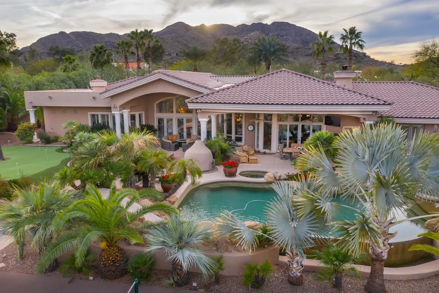 Classic elegance in quiet enclave of Paradise Valley. This custom quality Cullum home is privately gated on a tucked away cul de sac of impressive properties w/ views of Mummy Mtn. & the Phx Mtn. Preserve. Meticulously maintained by its current owners, it entertains beautifully for just two, or one hundred twenty-two! Outdoor spaces are plentiful for enjoying the Arizona evenings w/ firepit, fireplace, putting green, BBQ & ramada, waterfalls, heated pool & spa, lighted tennis court, walking paths circling gorgeously landscaped grounds. The floor plan offers a gracious open style w/ large bedrooms and grand-scale public spaces opening to the outdoors. The kitchen, family room, bar, game room, theater provide ample opportunity for casual group gatherings. This hidden haven is a tranquil gem!