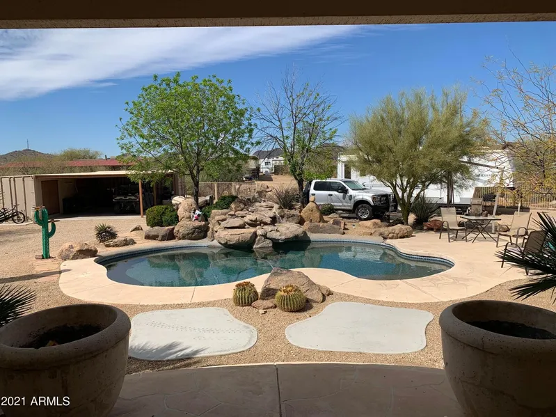 Very unique, one of a kind Horse Property on 1.19 acres. Enjoy this resort style backyard with very private pool. The land makes this a perfect home for entertaining - not to mention NO more need to board your horses. This place has it all. The natural wash separates horses from the pool. Custom workshop for all your toys, 2 RV Hookups and much more.