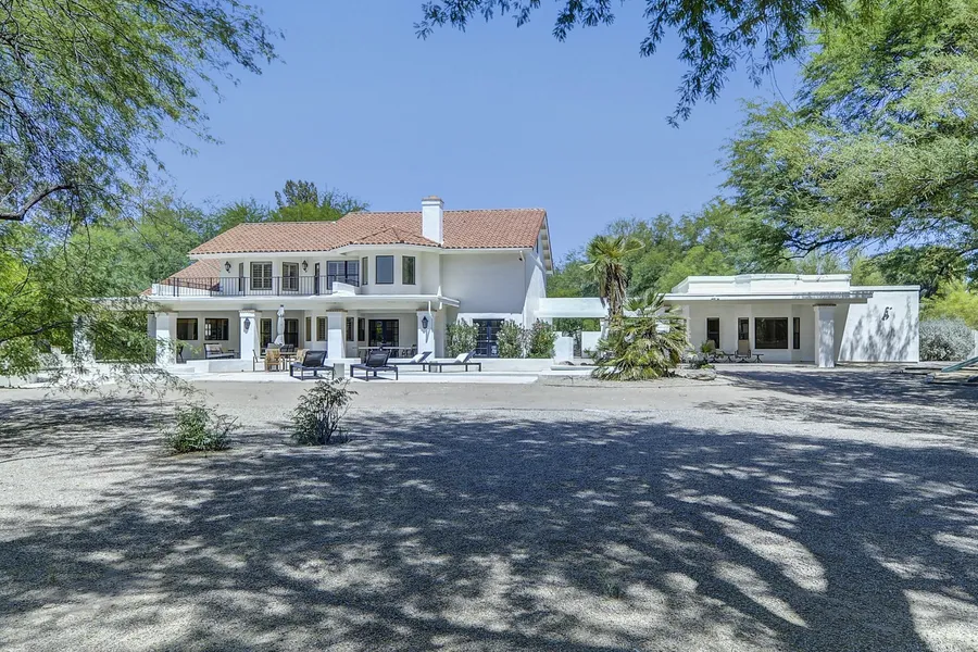 Unobstructed views of Mummy Mountain over Camelback golf course. Large family home set in a quiet cul-de-sac. Inviting main residence features a 4666 sq ft 4 bed 3.5 bath home, vaulted ceilings in formal living areas, real hardwood floors throughout. Bright kitchen overlooks backyard and mountain, granite counters, woodblock island, breakfast nook are open to a cozy family room with wet bar. The formal living room features a cozy fireplace and flows to a formal dining room, built in office, plus an additional bedroom/bonus room and full bath. Upstairs has a master retreat with sitting area, vaulted ceilings, private balcony incredible views of Mummy Mountain & Camelback CC Golf Course, gorgeous remodeled En-Suite master bath w his/her custom closets. 2 beds, full bath with bonus loft area