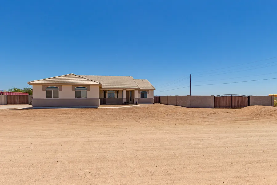 ONE ACRE PLUS in Superstition View Ranchettes w/incredible Mountain Views!!! 2 RV gates, 2 pedestrian gates and 4 CAR GARAGE! A true gem with NO HOA, Owned Solar Panels, and backyard enclosed with block wall!! GORGEOUS 4 Bedroom 2 bath freshly painted single level home w/soaring ceilings, 24'' porcelain tile floors, 6'' baseboards, ceiling fans, recessed lighting. Gourmet kitchen w/SS appliances, granite counters, pantry, 42'' cabinets w/crown moulding, HUGE ISLAND, breakfast bar and formal dining area. Master bedroom en suite has dual sinks, granite counters, separate tub/shower, and a walk-in closet. A laundry room w/built-in cabinets completes this beautiful home! Covered patio and plenty of room for a pool, private oasis, horses, toys,etc. COUNTRY LIVING AT ITS FINEST!!!