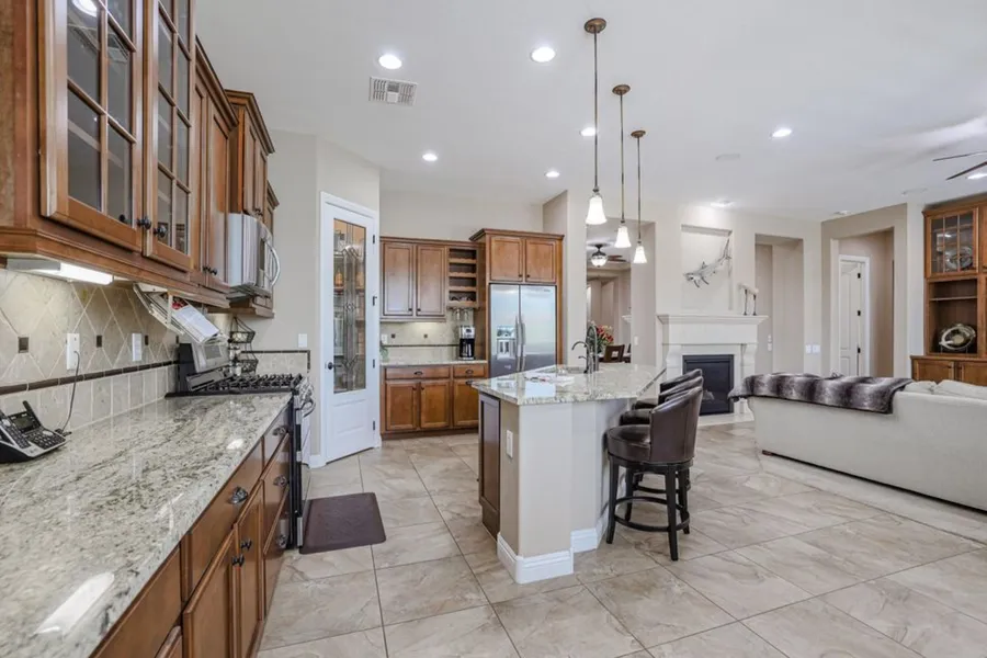 Classically STUNNING Home Situated on a Premium ELEVATED Corner Lot, Backing into NAOS & Amazing Sunset Views. 4 Bedrooms, 2.5 Baths+ a Den, 2 Way Fireplace, RV Gate. Home was heavily Upgraded with Pulte by Current/Original Owners. Some of the Upgrades: Dry Bar in Formal Dining Room, Coffee Bar in Kitchen, Entertainment Center with Bookcase in Family Room, Master Bath Tub & Shower, Granite Counters in Kitchen & Bathrooms+Soft Close Drawers. Huge Laundry Room with Cabinets & Sink. OverSized Master Bed Closet New AC Unit, Double Oven Stove, Dishwasher, Water Heater, Garbage Disposal Installed in 2021. Exterior Paint 2022. Heated Pool/Spa, Travertine Hardscaping, Putting Green, Modern Firepit & Bowls, BBQ Grill in 2016. Pre-Listing Home Inspection Completed. List of Upgrades in Documents Tab