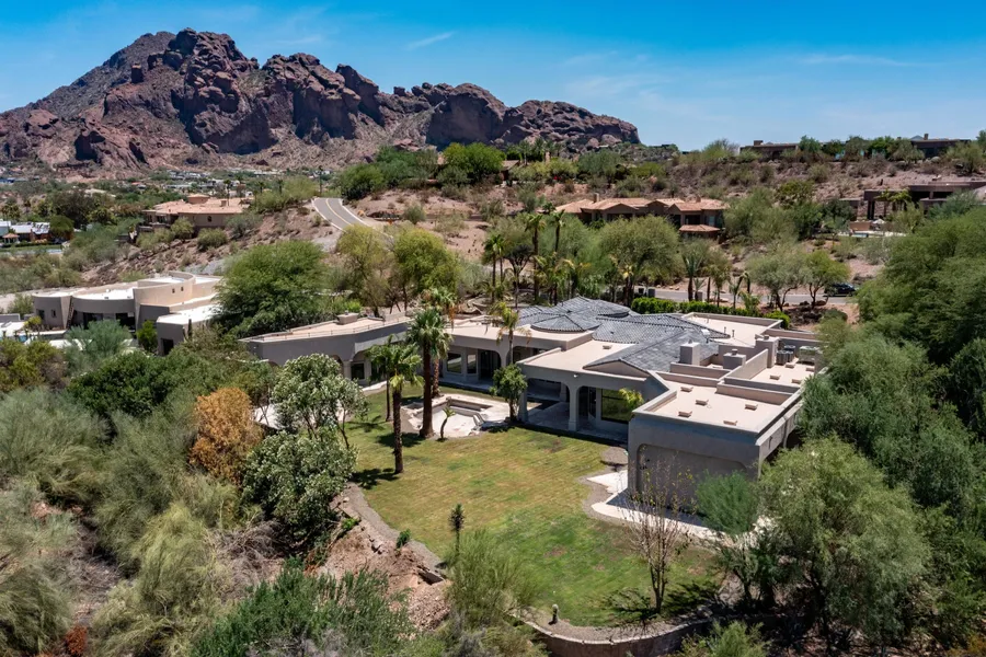 Refined bespoke luxury, extensively remodeled this Paradise Valley custom estate is simply a showstopper. Dramatic drive-up boasts a grand arrival, overlooking majestic mountain views of Camelback and Mummy Mountains this modern transitional ranch offers a well-planned design and alluring interiors throughout. Perfectly positioned on an acre plus homesite, this impressive estate with remarkable curb appeal is full of character for the most discerning owner. With 6 bedrooms, including a separate 1325 sq ft guest residence with private entry and access to outdoor living, 6.5 bath, home theatre, unique at-home pub with bar seating space for 10, and adjacent game room, this estate prominently offers it all. Expansive open kitchen with 15' oversized quartzite eat-in island, stylish Distinctive Custom Cabinetry, with spacious family room opening seamlessly to vast outdoor living. Transformed with the finest finishes including natural wide plank oak wood flooring, fresh interior and exterior paint, new roof, striking restoration hardware style lighting fixtures, modern woodwork, tile accents and surrounds, and fitting wine wall in dining room. The private owner's suite overlooks the expansive grassy backyard and claims abundant natural light, with spa-like bath and large exercise room you will have your own wellness retreat experience every day. The sprawling back yard boasts scenic mountain views, with pool and spa with generous space for limitless opportunity for personal design. Minutes to hiking at Camelback Mountain, close to exclusive PV and Arcadia shopping and restaurants. A special opportunity to enjoy elite estate living in prominent PV.
