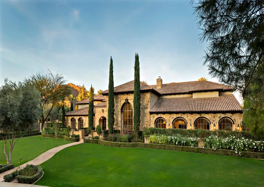 EXQUISITE! This Paradise Valley Estate represents true timeless elegance and sits on a 2+ Acre beautifully manicured landscape with views of both Camelback Mountain and Mummy Mountain. Centrally located in the exclusive enclave of La Place this world class home was constructed with the utmost of care, choosing the finest of natural finishes handcrafted to perfection. Estate comes with a well, whole house reverse osmosis water system, and generator. The home was redesigned by Mark Candelaria and FULLY REMODELED IN 2013. The home was tastefully updated to the sought after light and airy elegant style of today with subtle accents like beautiful large steel framed paned windows and French doors throughout. The flowing floor plan was created for both privacy and family enjoyment as well as for entertaining at a grander scale. The main level features a beautiful entrance, lovely bright living room, stylish large dining room, open state of the art culinary kitchen, butler's pantry, a welcoming spacious family room, full wet bar, a stunning master suite with a beautiful spa like bathroom, huge walk-in closet, lovely sitting room, workout room, indoor sport court and vast office plus a crafts studio with an additional bahroom and a large utility room. The upstairs features 4 more bedrooms with ensuite bathrooms a lovely guest suite, game room, bonus area and another separate guest suite/maid's quarter, laundry room, several balconies and terraces. The functional basement features a game room, wine room and a high-tech movie theatre. Several covered patios with views of the large pool and beautifully landscaped back yard with a brand new pickleball court partly shaded by mature trees perfectly suited for outdoor entertaining and enjoyment. Truly Quite Special!