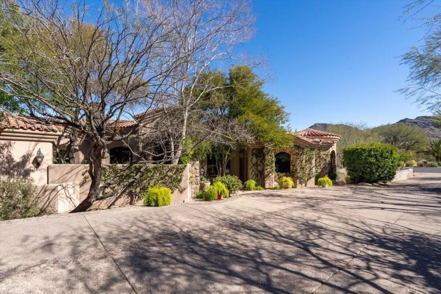 Exceptional single level estate! Classic elegance encompasses this gorgeous Tuscan Mediterranean jewel in Paradise Valley! Enchanting courtyard entry into your private sanctuary in gated community of Desert Jewel Estates. Upon grandiose entry of its stately iron door into foyer and formal living and dining area, pocket doors open up to an exquisite outdoors with water feature wall, splendid outdoor fireplace, sparkling pool, jacuzzi, zen-garden, \and outdoor kitchen. Home features a perfect balance between indoor and outdoor resort-like living spaces. Ornate fireplaces throughout property deliver warmth & comfort in this timeless luxury retreat. Main home features 4 bedrooms, 4.5 bathrooms, 2 distinct offices, detached guest house, 4 car garage.