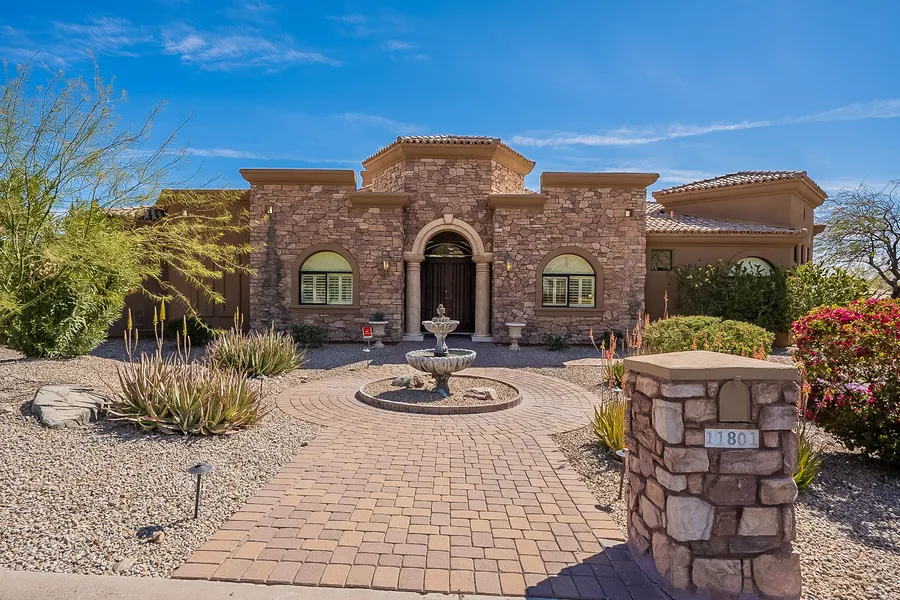 Luxurious 6 bedroom, 5 bath custom built home in prestigious, gate guarded Ancala. Offering beautiful front yard mountain views and located on a corner golf lot location. Superb finishes are showcased starting with a grand entry with see through to a beautiful landscaped yard. The entry includes Venetian plastered columns and polished travertine flooring. Gorgeous oversize gourmet kitchen with 2 islands, rich woods, premium appliances, granite countertops and Espresso/wine bar. Primary bedroom suite has rich wood flooring and includes a truly spacious his and hers closet. The backyard feels like you are in a resort. Large covered patio, built in BBQ overlooking a heated pool and spa and fire pit. Large grass area and citrus trees. Plans for rooftop view deck are included.