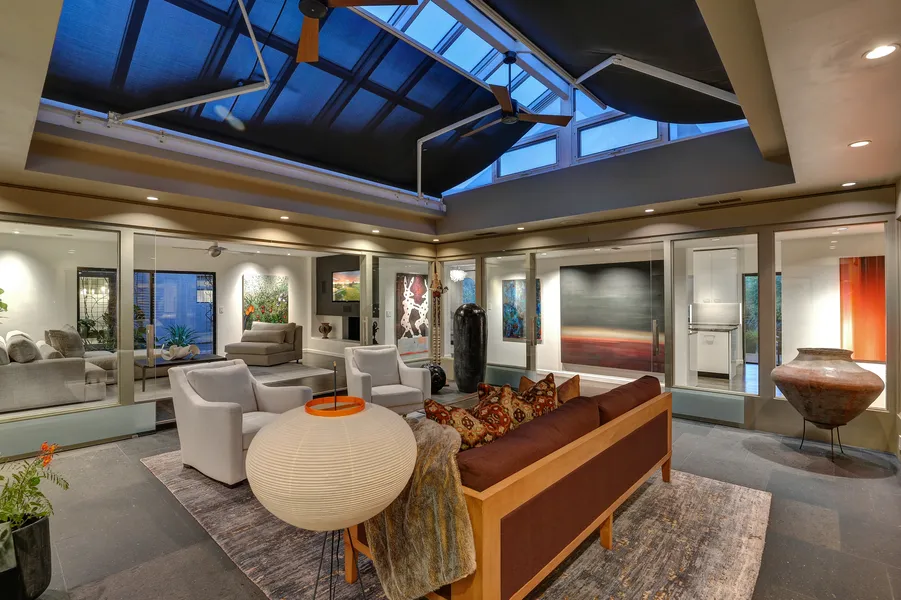 A peaceful and spiritual-like ambiance and feel, with ideal walls and lighting for those with a passion for displaying and appreciating art and artifacts, this exceptional Paradise Valley home is a rare find and provides the fortunate new owner a very special opportunity. With beautiful mountain views, lush green and thoughtfully designed grounds, calming pool, and large covered patio, the outside offers an environment of tranquility and serenity as well. In addition, the home is ideally located just minutes from Old Town Scottsdale, Fashion Square Mall, and the area's finest restaurants, shopping, galleries, spas, and health clubs, and the Phoenix International and Scottsdale Airports are less than 20 minutes away. Come and experience this very unique and memorable home.