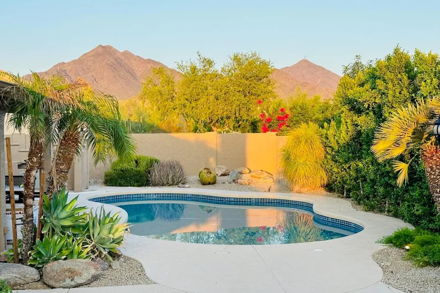 Beautiful remodel in the heart of North Scottsdale's Ironwood Village community, offering an abundance of paved walking paths, McDowell Mountain views, a community park, tennis, sport court and children's play area with nearby shopping, dining and entertainment. This soft contemporary home was taken down to the studs and concrete then completely redesigned to provide a more open concept floor plan featuring handmade farmhouse entry doors, smooth level 4 interior wall finishes, 16 foot black sliding glass door, a new en-suite bedroom and much more. You're sure to love the lush backyard, large covered patio, BBQ area, mountain views, sparkling pool and our unforgettable Arizona sunsets. Luxury finishes throughout include a feature wall of Calacatta Gold porcelain tile, 6 foot linear fireplace, Caldera Blanca wide plank porcelain flooring throughout. The newly designed kitchen offers white ...