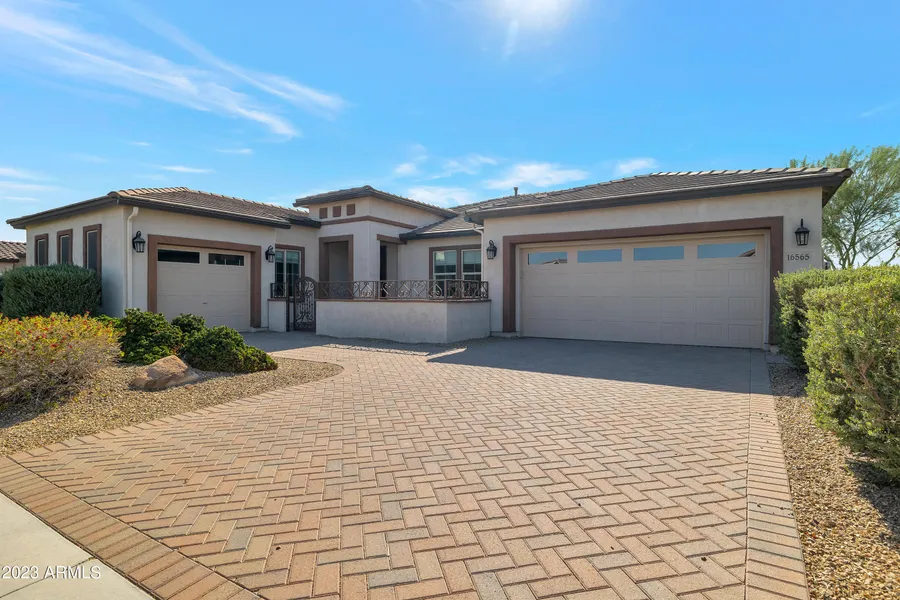 Lakefront beautiful home in the great Active Adult community of Cantamia! Nestled in the Estrella Mountains, this home and lake inspired community have so much to offer! Wake up each day with a gorgeous view of the Lake, and be steps away from all the amenities! This home has beautiful tile flooring throughout and a stunning gourmet kitchen with a huge kitchen island, and lakeview! Under Cabinet lighting and custom back splash will have you loving your kitchen. There is a large Master suite with dual sink ensuite bath, walk in shower and customized dual closets. A versatile Den/Office space has custom built in shelving and plenty of Natural lighting. An additional Flex room with French Doors can easily double as 3rd bedroom for guests, or a craft or game room! The open concept great room has a beautiful lake view as well as a custom media wall, complete with electric fireplace for you to relax and enjoy. The large outdoor covered paver patio, complete with ceiling fans, will have you enjoying the beautiful mountain and lakefront views right from your own backyard. Cantamia amenities are numerous...Indoor and outdoor heated pool and spas, Pickle Ball courts, Art studio, Dog park, Tennis, Bocce Ball Courts, A full fitness and aerobic studio, locker rooms, Caf and Bar, Tech room. demo kitchen, outdoor bandshell, Numerous walking and biking paths and loads of clubs and classes! The extra monthly scheduled activities will certainly have you enjoying this resort style community! Estrella Mountain has numerous hiking and biking trails outside the gates, and South Lake has Kayaking and Paddle boats for residents to enjoy! Come for a visit...stay for a lifetime! See you soon!