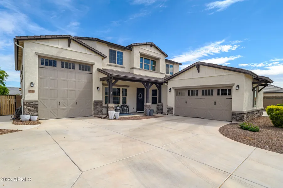 Welcome to Waddell- Seller is offering up to $40,000 in Seller Concessions to buy down interest rate and/or closing cost! Call your Realtor for more info! 4 bed/ 3.5 bath superb living spaces both inside and out! Don't forget about the 45' Deluxe RV Garage! Plenty of parking for your cars, boat or use it for billards and entertaining friends! Gourmet kitchen offers a huge island, quartz countertops, gas cooktop and HUGE pantry. Great room, flex space, loft with two primary suites, one downstairs and one upstairs other bedrooms upstairs. Energy Efficent home with with smart technology. Plenty of upgrades! Finishes are top notch! Enjoy the heated salt water pool with baja deck and spa, travertine decking and an outdoor kitchen to complete your backyard oasis. Backs to walking trail!