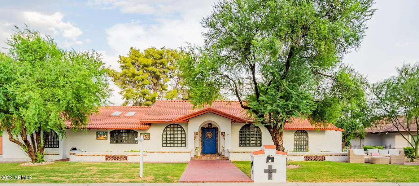 This ONE is a distinct, classy and different. There is no doubt you won't see this style again. This home stands alone in all ways. This heartbreaker has it all. There is no competition. When will you see it in person? This home has been given a fresh facelift inside and out. These pics do not do the space its proper justice. This home has gorgeous wood flooring, a space for the home office, a flex space for the guests or adult kids. Multi-generational and can follow through life's different stages of life. The main house has three full bedrooms and two full bathrooms. All the spaces are designed for young or older children. Built in cabinets for the book collection or all the things that make your space feel comfy and right at home. The Blue cabinet in the kitchen have been painted. Ask me for the video rendering. This home backs to the Blue Course at Wigwam Golf Club. Mid Century tone ...