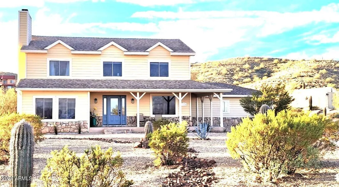 Welcome to this well-maintained colonial farmhouse which features 3 bedrooms, 2.5 bathrooms, 2 car garage, RV covered parking space, NO HOA, stunning mountain views all on 2.5 acre lot. 1st floor features a half bath, storage space under stairway, sunken living/family room with beautiful stone fireplace, all tile flooring bright and open space gives this home a relaxing feel that leads to this amazing updated kitchen, all stainless-steel appliance, formal dining area, a great laundry room. 2nd floor offers an office space, Master bedroom that has vaulted ceiling, walk-in closet, ensuite bathroom that has been updated. 2 other bedrooms have double door closet space with custom built-in auto lighting, shelving, and neutral carpet. 2nd bathroom has an antique claw foot tub with shower. New modern double sink vanity, mirrors/lighting, black/white tile flooring give this space a charming modern farmhouse vibe. Lot features a concrete covered slab for RV parking. The size is 18x40 this is a covered space that is perfect for your RV or toys.