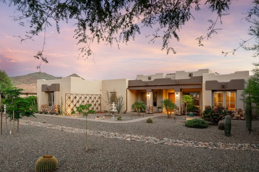 Gorgeous gated home just north of Tramanto in west Desert Hills! This home is beautifully appointed with a large double island kitchen, built in fridge/freezer & gas range. The great room boasts a stone fireplace as the centerpiece of the room, with great views to the extended covered patio and luxurious pool and spa. The floorplan is split with the master offering a separate exit to the pool/spa, large bathroom with soaking tub and oversized closet. Two of the guest rooms share a jack & jill bath with separate sink areas. The 4th bedroom has double doors and may also serve as a private office. The property grounds are amazing with privacy hedges, garden areas and an artificial turf lawn leading up to the pool & spa. There is a 4 car garage plenty of room for your RV, workshop & horses.