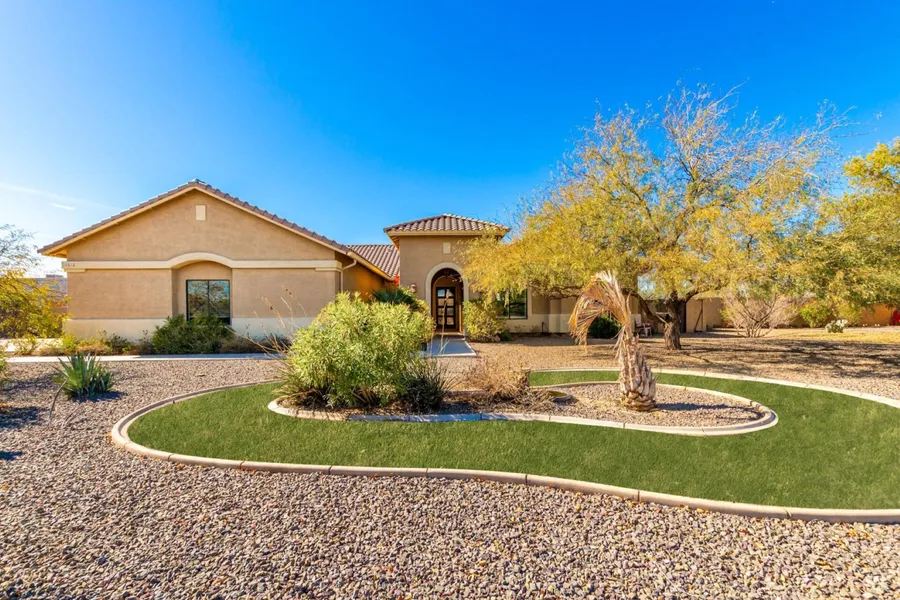 Immaculate 4 Bed, 3 Bath Oasis on 1 Acres w/ Pool, 3-Car 1074 sf Extended Garage, RV Gate, and No HOA! Welcome to your slice of paradise! This stunning residence offers spacious layout with 2820 sq ft. Kitchen featuring S.S. appliances, granite countertops, and ample storage space breakfast bar. Primary suite has patio walk out slider with spacious bathroom, walk-in closet & custom tiled walk in shower. Three additional generously sized bedrooms, jack & jill full bath & additional 3rd full bath. Amazing laundry room with storage.Back yard has covered patio, fruit trees, perfect sized pool and extra space if you want to build an additional garage.10 mins to shopping the 303 Hwy or Rte 60.Peaceful setting and amazing sunsets