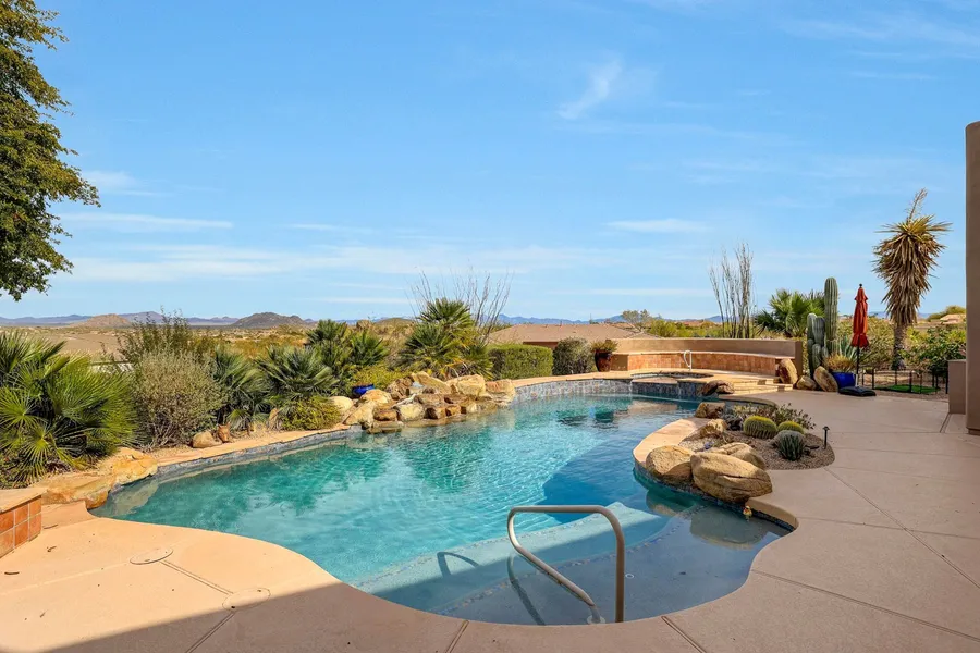 Views, Views, and more Views! Perched majestically on an elevated position within the exclusive guard-gated Troon Village, this exceptional residence offers an unparalleled visual feast, showcasing breathtaking views that span from up-close boulders and Troon Mountain to the distant beauty of Four Peaks—all seamlessly unobstructed. The home features four bedrooms, all ensuite, a powder bath for guests, a three car garage, and 4,602 square feet of living space. A testament to thoughtful design, the home is strategically oriented to maximize these awe-inspiring views, creating an atmosphere of tranquility and natural beauty. The interior boasts flowing living spaces that are both light-filled and spacious, characterized by high ceilings and expansive windows that capture the essence