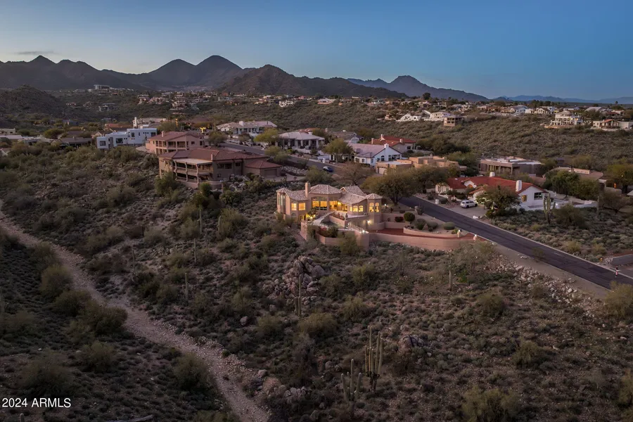 Under Appraised Value! Welcome to your desert oasis on a secluded 1.2 Acre View Lot! Upon entry, scenic mountainviews surround you throughout this spacious 4 Bedroom, 3 Bath home. Living level hosts a breakfast room, updated white kitchen w/marble island, open living dining areas w/cathedral ceiling & fireplace,Bedroom & private Master Suite w/luxurious bath. Floor Plan Attached. Lower level w/tandem 3-car garage, dry sauna, & 2 more bedrooms w/private walkouts. View deck lets you relax while soaking in spectacular sunrises. A few steps away, rests a large pool & sun deck that illuminates beautifully for evening entertaining complete w/built-in kitchen..ALL ON A SOUTH FACING! Dog Run, Appliances & Home Warranty w/ FPO, recently painted inside & out to let your style shine!