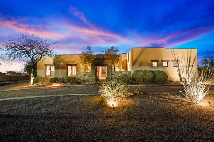 Nestled in the tranquil desert landscape of Arizona, this exquisite estate, boasting a sprawling 1.109-acre lot, stands as a testament to architectural sophistication and refined living. With its distinctive Southwestern design blending seamlessly with the natural surroundings, the property welcomes you with a facade adorned in smooth stucco, natural stone detailing, and an inviting entrance. Embrace the freedom of a home without an HOA, where your lifestyle choices are unrestricted, and the vast lot with horse facilities invites you to experience the full spectrum of desert living. This property not only captures the essence of luxurious living but also offers a rare blend of unrestricted freedom and natural splendor that makes it truly one-of-a-kind.
