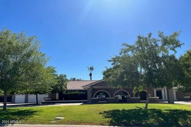Best price per SF in the highly sought after neighborhood of Longhorn Ranch. This 3,808, single story ,6CG, 5-bedroom, 3-bath home on a sprawling 1.1-FLOOD irrigated acre lot with a back yard so serene with Mature Citrus and shade trees, diving pool, sport court and fully covered patio are just a few amenities this home has to offer. neighborhood of Peoria, AZ. You'll find shopping, several restaurants and freeway access just minutes away. You'll be greeted by a circular drive and a 6 CG as you approach this beautiful home. Plenty of natural sunlight, Solid maple floors, granite counter tops, vaulted ceilings and 2 fireplaces compliment the interior. of this home. Make your appt now to see this home The sizeable primary bedroom is complete with direct backyard access, a romantic fireplace, and a lavish ensuite bathroom with dual sinks, a jetted tub, a raindrop shower, his/hers closet. Fall in love with the enchanting backyard, an outdoor paradise featuring a covered patio, a basketball court, an expansive lawn, and a refreshing pool with a diving board for cooling down on hot summer days. Make this gem yours today..