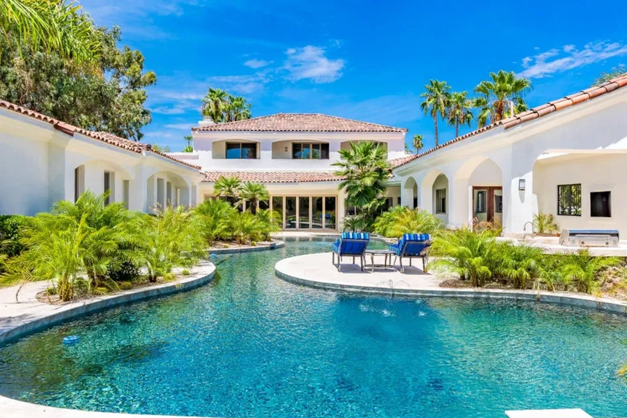 Luxurious Paradise Valley Estate - Entertainer's Paradise! Welcome to your dream oasis in Paradise Valley, where luxury and sophistication meet unparalleled comfort and entertainment. This custom-built home boasts 6 bedrooms, 6 baths and over 9200 square feet of opulent living space. Nestled on over an acre this palm tree estate features lush grounds and several stunning fountains. As you enter through your private gates, you're greeted by a grand motor court leading to the exquisite, handcrafted entry doors. Step into the expansive 1200 square foot great room with LED backlit coffered ceilings, featuring 30 feet of retractable glass doors that seamlessly merge indoor and outdoor living. A private beach and lagoon pool await, surrounded by lush tropical gardens, a tucked away spa for privacy, a circular fire pit, an outdoor BBQ area, and a large outside dining area perfect for hosting un...