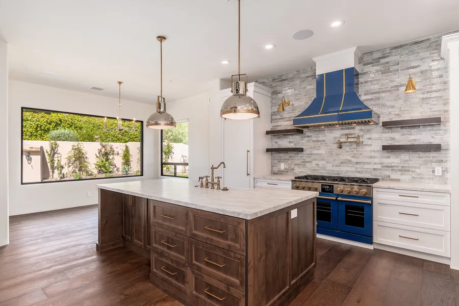 Nestled in the heart of Troon Ridge Estates II at Troon Village, this completely renovated custom residence blends old-world charm with modern French contemporary styling. Originally built by RS Homes Custom Design, the home has undergone an exceptional transformation under the expertise of designers Veralin Bergen and Becky Whitmore, owner builder Bryan Siewan, and construction manager Angel Vazquez, all from Dream Home Design. The owner and team's meticulous attention to detail has resulted in a unique masterpiece that is both timeless and elegant, offering a perfect balance of luxury and comfort. The perfectly sized 3,246 square foot, three-bedroom plus office, three-and-a-half bathroom floor plan has no interior steps and mountain views from every window, including Troon Mountain, McDowell Mountains, and Tom's Thumb. The interior features exquisite finishes, including a 1960 Murano Italian chandelier in the office, which showcases a stunning mountain view, and a stunning late 1800s French marble fireplace mantle paired with a French Rococo-era 1870 fire screen in the living room. Wide plank, French-milled wood flooring, and beamed ceilings finished with a custom stain grace the main living areas both inside and out. The countertops in the kitchen and all three bathrooms boast marble from India. The master bath and both ensuite guest baths boast stunning inlaid carrara marble patterns thoughtfully added during the renovation. The powder bath is a true statement with hand-painted tile flooring, a floating-lit vanity with Brazilian marble, an incredible three-tear drop light installation, and Italian wallpaper for a distinct touch of Southern European elegance. Culinary enthusiasts will appreciate the custom stove and hood from Blue Star Appliances, a Sub-Zero freezer and refrigerator - separated to the left and right of the kitchen - floating display shelves, tile backsplash, center island that includes extra storage, built in microwave and dishwasher, pendant island lighting, custom soft close cabinetry with a custom wood block lift for a mixer and a dedicated pantry. Entertain guests with ease thanks to the built-in wine refrigerator and Sonos sound system that extends both indoors and outdoors. The home also features an Art Frame Samsung 4K TV in the main living area and three Samsung 4k televisions in each ensuite, automated Hunter Douglas window treatments throughout the house, and an interior and exterior alarm system for ultimate convenience and security. The backyard is a tranquil retreat that showcases stunning Sedona-esque mountain views, complete with a newly installed 8-person waterfall spa, an exterior fireplace with a reclaimed farmhouse beam mantle, a built-in barbecue with a stone countertop, large covered patio with travertine hardscape and a professionally landscaped grounds that include two lemon trees, one dwarf peach tree, two fig trees, and premium artificial turf. Uplighting showcases the stone accents throughout the property, enhancing the ambiance for evening gatherings. A custom metal Dutch door and collapsing three-panel door in the living room invite you to enjoy Arizona's beautiful weather. The entire home (inside and out) has the LifeSource water system. The backyard fountain is from Spain circa the early 1800's. This property boasts all-new landscaping with multiple new trees planted outside the fencing area to create the ultimate private retreat without blocking the stunning mountain views. This incredible property also includes a dry sauna located in the garage, a large laundry room with a new washer and dryer, sink and storage, an electric Tesla car charger, newly installed HVAC systems, garage doors with custom hardware, Classy Closets storage solutions, a sculptural lion knocker by a renowned California artist add the perfect finishing touches to this one-of-a-kind home.