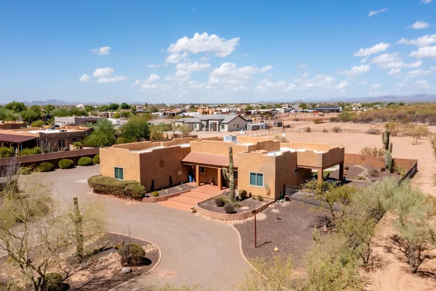 Absolutely charming ranch style home ready to move right in! This home is situated on 4 acres (2 parcels) with paved road access, mountain views and is fully fenced with no climb fencing. This single story property is beautifully maintained and is horse ready. Tastefully updated with granite counter tops, stainless appliances and shutters throughout. Solar panels are owned and electric bills extremely low. No HOA. This perfect home is waiting for you to enjoy all that AZ living has to offer both indoors & out.
