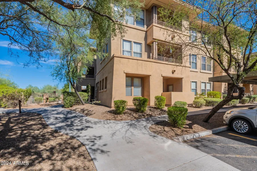Welcome to this beautiful condo in North Scottsdale, located in the prestigious Edge at Grayhawk Community. Views of McDowell Mt. Completely new luxury vinyl plank flooring and sparkling tile flooring, new light fixtures, completely remodeled kitchen and bathroom, new 2023 washer and dryer. Enjoy amenities like concierge service, community great room and sports lounge, business center, heated resort style pools, rejuvenating spa, fitness center, and a private movie theater. Perfect for those seeking a blend of comfort and luxury in the resort style living Grayhawk community. Walking distance to park, pickleball, grocery store, and restaurants. Hospital and freeway are a stone's throw away. DC Ranch and Scottsdale Quarter shopping and restaurants less than 10 minutes away.