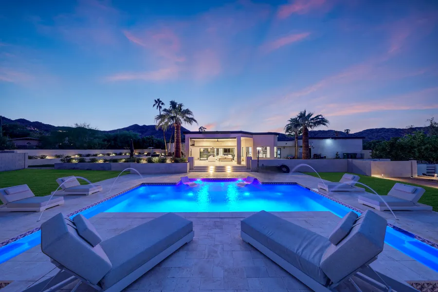 Breathtaking Paradise Valley retreat that has been meticulously transformed into a modern sanctuary, epitomizing the essence of contemporary elegance. This residence has undergone an extensive renovation, seamlessly blending sophistication with the allure of Arizona's outdoor lifestyle. The home is designed to captivate with its emphasis on clean lines, abundant natural light, and a layout crafted to optimize the joy of indoor/outdoor living. The property boasts a newly added heated pool, spa, and a pristine white travertine deck, creating a picturesque oasis perfect for entertaining as well as a new roof added in 2023. Meticulously landscaped surroundings, which include a barbecue area, hardscaping, in-ground trampoline, bocce ball, and a putting green.