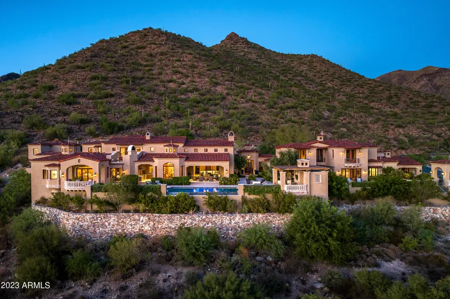 Motivated Seller and SILVERLEAF GOLF MEMBERSHIP opportunity available. Nestled within the prestigious Silverleaf community's Upper Canyon, this magnificent Mediterranean Estate is a testament to extraordinary craftsmanship and design. Spanning an impressive 13,272 square feet, this residence offers unrivaled vistas of the cityscape, mesmerizing sunsets, and the majestic mountains of Scottsdale, Arizona. Crafted through a seamless collaboration between the visionary Mark Candelaria of Candelaria Design, the master builder John Schultz of Schultz Development, and the renowned interior designer Isabel Dellinger Candelaria of Earth and Images, this home radiates elegance at every turn. The result is a sophisticated sanctuary, decorated with the finest luxury finishes and meticulous attention to detail. The thoughtfully designed great room floor plan provides a harmonious flow, separating the principal suite from the guest wing of the home with a private entrance hosts five generously appointed en-suite guest rooms, each boasting king-sized accommodations. This layout offers both privacy and comfort for residents and guests alike. Step outside to discover a breathtaking outdoor oasis, featuring a captivating negative edge pool, a generous spa for ultimate relaxation, and multiple inviting seating areas set amidst flawlessly manicured gardens. This al fresco retreat is an idyllic backdrop for intimate gatherings or grand-scale entertaining. Embodying the pinnacle of architectural excellence in the esteemed Silverleaf community, this Mediterranean Estate offers an unparalleled lifestyle of luxuriousness, elevated by its breathtaking natural surroundings. This is a residence that redefines luxury living in Scottsdale, Arizona. Silverleaf, located in North Scottsdale, Arizona, is a prestigious guard gated community known for its luxurious estates, exclusive golf courses, private Club and stunning desert landscapes. The Tom Weiskopf-designed Silverleaf Golf Course is a highlight for golf enthusiasts. With a blend of Spanish and Mediterranean-inspired architecture, the community offers a high standard of living, including upscale amenities like spas, fine dining, and exclusive shopping. Residents enjoy a harmonious balance between modern luxury and the natural beauty of the desert environment, making Silverleaf a sought-after destination for those seeking an exceptional lifestyle in North Scottsdale.
