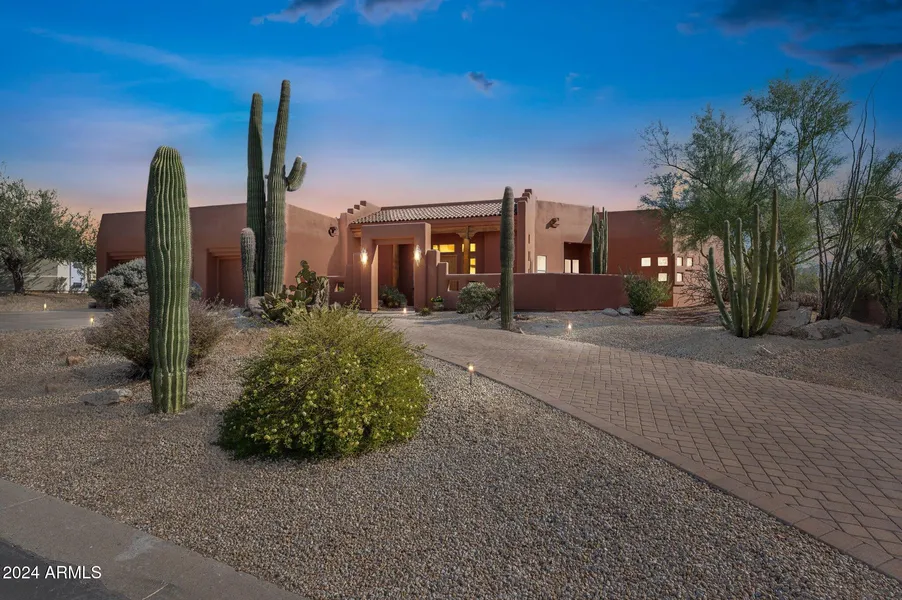 Nestled in the exclusive gated community of Desierto Vida, this beautiful custom territorial home offers unparalleled privacy and breathtaking mountain views and lush saguaro cactus throughout property. Boasting 12' ceilings and a bright, open, single-level split floor plan, whole house sound system the home is designed for effortless elegance. Floor-to-ceiling windows frame the serene backyard, where a sparkling pool, spa, water feature, and 3600 sq. ft. of pavers create an entertainer's paradise. The spacious kitchen features a large island, gas cooktop, Sub-Zero refrigerator, dual ovens, and a walk-in pantry, flowing seamlessly into the family room and nook. The beautiful primary suite includes a fireplace, dual walk-in closets, dual vanities, a soaking tub, and backyard access. Secondary Bedrooms feature either an ensuite or jack and jill bath set up, both with walk-in closets. On ne...