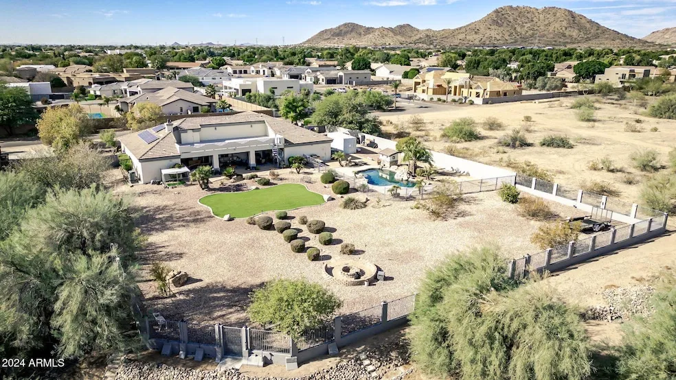 This PERSONAL PARADISE in Peoria is CLOSE to EXCELLENT SCHOOLS, SHOPPING, FREEWAYS, and ENTERTAINMENT but STILL TUCKED AWAY in a PRIVATE and PEACEFUL LOCATION*KITCHEN has GRANITE at ABUNDANT COUNTER SPACE, neutral UPGRADED CABINETS, ISLAND, bay window, and EXTRA LARGE WALK-IN PANTRY*GREAT ROOM has FIREPLACE*FRONT ROOM can be office or sitting room*GREAT STORAGE*GUEST SUITE has FULL BATH and separate OUTDOOR EXIT*EXPANSIVE OWNER SUITE has SITTING ROOM (used as office) and FANTASIC BATH with WALK IN SHOWER and TUB with JETS*RASTA (IFC) BLOCK CONSTRUCTION*NEWER ROOF, SHUTTERS, SOFT WATER, GARAGE CABINETS and the list goes on*OASIS BACKYARD has FABULOUS DEEP PATIO, SOOTHING POOL, TURF, MOUNTAIN VIEWS, and room for RV PARKING*Come by and see why YOU WILL WANT TO CALL THIS PLACE YOUR ''HOME''
