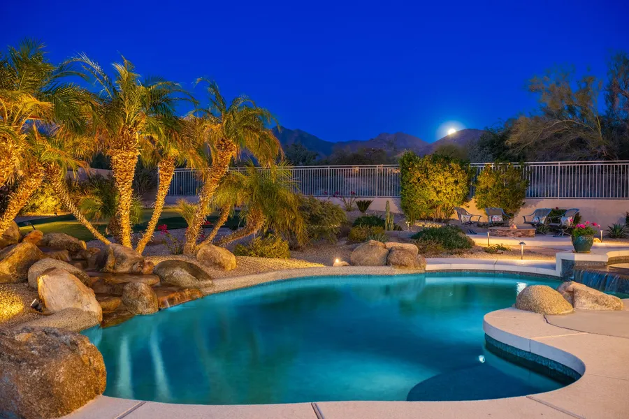 The primary suite is large with exterior access, a sitting area, and a large bathroom with separate shower and soaking tub, walk-in closet, private toilet room and dual vanities. Two of the guest bedrooms share a Jack-n-Jill bath and the fourth guest bedroom has an ensuite bathroom. The formal living and dining spaces along with the family room, private office, large laundry, and powder bath round out the living areas. This home has been meticulously maintained with regular services, including weekly pool and bi-weekly landscaping care, pest control, and annual roof inspections. The garage, irrigation, and plumbing systems have all been upgraded, ensuring peace of mind for years to come. Experience the best of Arizona living in this serene, luxurious retreat! Furnishings and accessories are available by separate bill of sale. McDowell Mountain Ranch provides an exceptional lifestyle with access to the renowned McDowell Mountain Ranch Golf Club and its on-site restaurant, a top public golf destination in Scottsdale. The community offers two well-equipped centers featuring amenities such as pickleball, tennis, basketball courts, playgrounds, pools, parks, scenic hiking trails, and various activities for all ages. Residents can also take advantage of the McDowell Mountain Aquatic Center, complete with pools, a lazy river, waterslides, fitness facilities, and a skate park. Conveniently situated near an array of restaurants, shopping options, a library, and major attractions like Kierland, Scottsdale Quarter, WestWorld Event Center, and the 101 freeway, McDowell Mountain Ranch offers a seamless blend of recreation and connectivity to everything the Valley of the Sun has to offer.