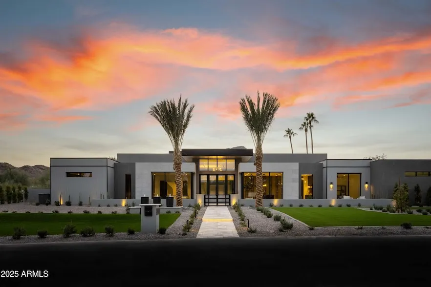 Brand-new modern home by Patterson Homes. Experience over 8,000 square feet of thoughtfully designed living space. The moment you enter, you will be struck by the abundant natural light and the open layout that highlights panoramic views of Mummy Mountain. At the heart of the home, the main living area seamlessly connects to a beautiful kitchen featuring Miele appliances, a spacious eat-in island, and plenty of storage - making it perfect for both daily living and entertaining. A true split layout ensures maximum privacy, with the lavish primary suite tucked away in its own wing. Here, you'll find a showstopping bathroom and a generously sized closet complete with its own washer and dryer. On the other side of the home, the guest wing includes four ensuite bedrooms, an oversized laundry room, and a large flex space - complete with a full bar and pass-through window overlooking the re...