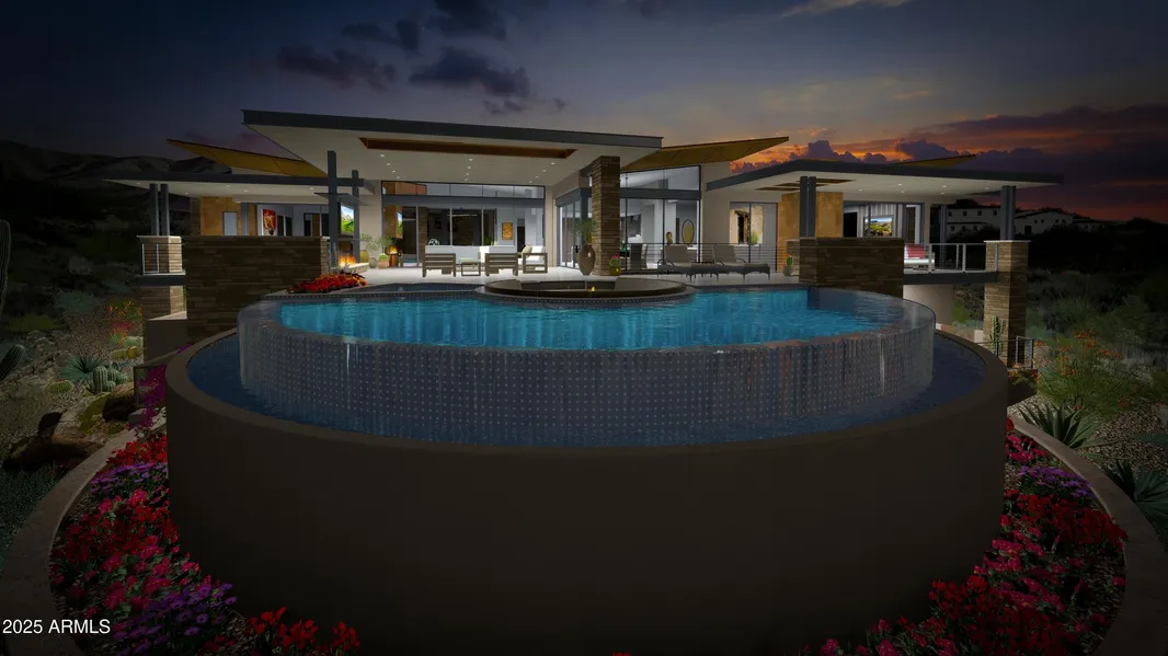 A full GOLF MEMBERSHIP is available. Luxury living at Desert Mountain offering unparalleled views & elegance. For those who demand the absolute best, this to-be-built architectural masterpiece by Black Stone Development and Graffin Design is nestled on one of the most coveted homesites in Desert Mountain-lot 18 in the Village of Cochise Geronimo. This estate offers breathtaking panoramic views of city lights, dramatic Arizona sunsets, pristine golf courses, and majestic mountains. Exquisite design & exceptional craftsmanship define this home. Thoughtfully designed to the highest standards, this approximate two acre estate seamlessly blends sophistication, modern desert luxury and a functional floorpan. Home Highlights: The open-concept layout and expansive indoor-outdoor living spaces are designed to embrace Arizona's year-round beauty. Approximately 7,200 sq. ft. of open-concept living - perfect for effortless entertaining and everyday comfort. Five spacious en-suite bedrooms each offering privacy and elegance Dedicated study/office is ideal for remote work or a quiet retreat. Lower-level living area includes a fire glass wall with a striking view into the showcase four car garage for all the cars and toys. Additional two car garage on main level. Additionally enjoy a flexible multi-purpose room, ideal for a home gym, theater, or golf simulator. State of the art kitchen includes top of the line appliances. Stunning 200-bottle wine room with dual-sided glass enclosure. The resort style backyard features a sparkling pool, spa, outdoor family room, and expansive covered areas for entertaining. Prime Location & Exclusive Lifestyle Located just a short walk from the renowned Cochise/Geronimo Clubhouse that offers: A state-of-the-art driving range for golf enthusiasts, two exceptional restaurants for fine and casual dining. Access to the legendary Cochise and Geronimo golf courses This is a rare opportunity to own a world-class luxury estate in one of Scottsdale's most exclusive communities.