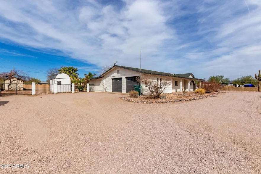 Charming updated 4 Bedroom 2 Bath home on 1.093 Acres PLUS a 700 sqft partially finished BASEMENT and No HOA. New interior & exterior paint 2022, New carpet 2022, New patio roof 2024. Adorable farmhouse with a split floor plan & large laundry area. Kitchen is upgraded with GRANITE counters, New appliances 2022, & plenty of cabinets. Primary bedroom is roomy, upgraded bathroom with walk-in shower. All bedrooms are nice size & hall bathroom is updated. New ceiling fans & lighting throughout. Beautiful white corral fencing, surrounded with block wall for privacy. RV Gate, RV parking, & 2 car garage. 5 horse stalls w/water, tack room w/electricity, & Workshop w/electricity. Chicken Coup & fruit trees. A 200 sqft ADU/tiny house with kitchen & 3/4 bathroom on property. Can be used as a guest house, mother-n-law suite, or office. Bring your toys, RV, and horses, great location close to 202, 60,...