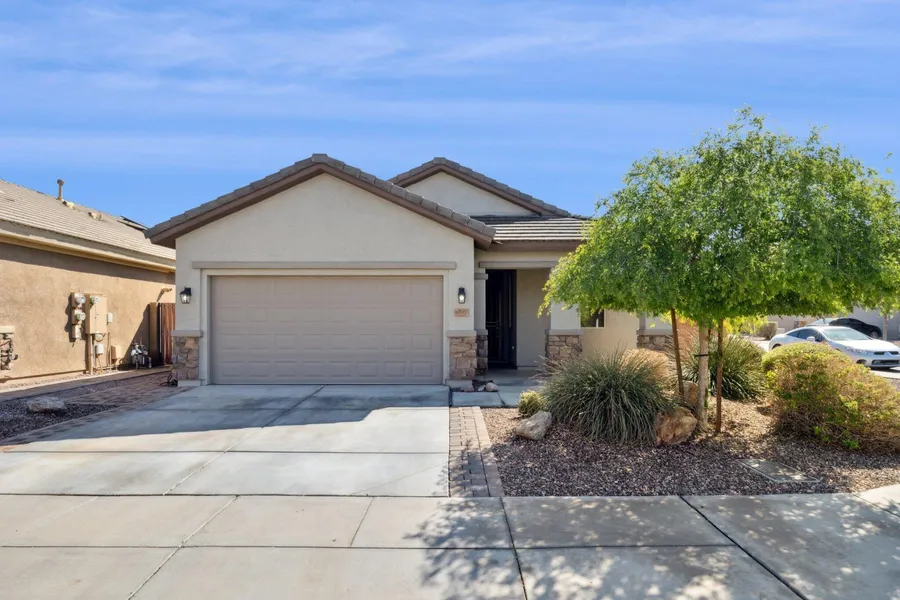 SOLAR INCLUDED!!! Energy Efficient Elliot home with a freshly painted exterior. Enjoy the Mountain views from the front porch. Located in Laveen Meadows, this property features a spacious open floor plan with eat in kitchen and breakfast bar. Tile and Laminate wood floors throughout! You will enjoy the abundance of cabinet space and the eat-in kitchen/dining The refrigerator + Washer//Dryer are included with sale. Professionally landscaped backyard with grass, pavers and view fencing to common area. This is one of the best deals in Laveen Meadows and will not last long. Save money on utilities with this home's solar panels and tank-less water heater. Close to the NEW park. Easy access to all of the most popular stores and restaurants. Easy access to the new 202 Fwy.