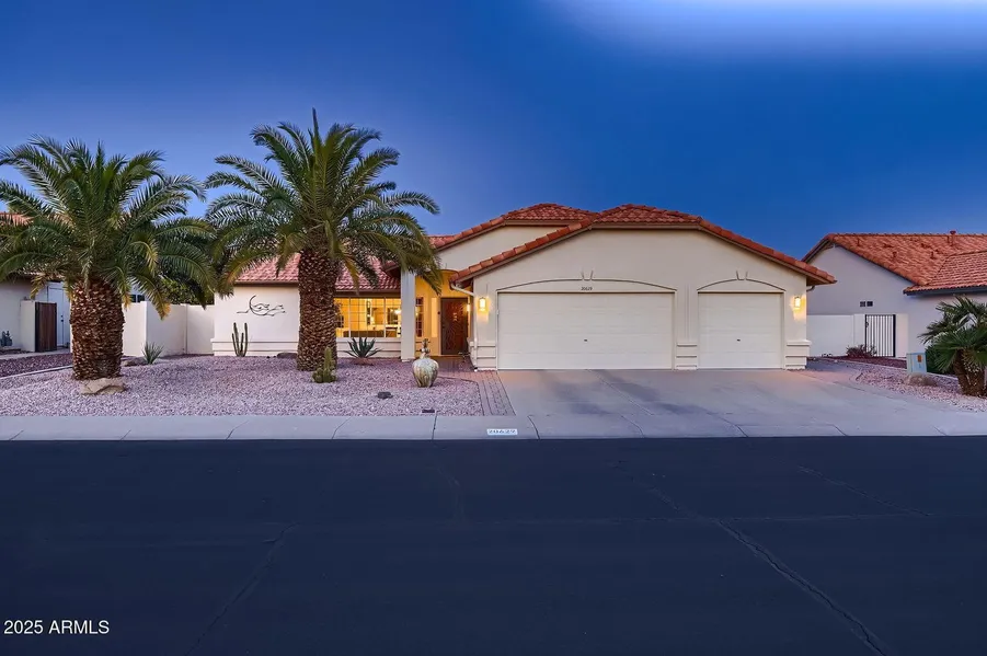 Wake up each morning to the peaceful sound of cascading water in this serene desert retreat. Nestled on the edge of one of Ventana Lakes, this beautiful 2-bedroom, 2-bathroom home offers a split floor plan designed for comfort and privacy. The expansive 3-car garage provides ample space.. Enjoy water views from the spacious kitchen, which flows into a cozy private dining area. A formal living room also features a delightful dining space, perfect for relaxing or entertaining. The master suite is both roomy and serene, with a beautifully remodeled walk-in shower. A private boat dock awaits in the backyard, offering direct access to the lake's tranquility. Located in the peaceful Ventana Lakes 55+ community, this home is an ideal sanctuary for those seeking harmony with nature.