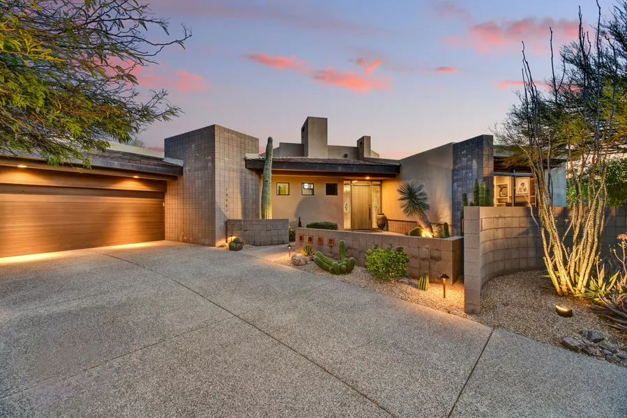 FULL GOLF MEMBERSHIP available with this inviting home, perfectly situated along the 5th Fairway of the Apache Course, offering breathtaking views of the 5th Green. Designed on a single level without steps, it showcases contemporary architecture with expansive windows that bathe the interior in natural light. Featuring 3 bedrooms, 3.5 baths, and 2,990 sq. ft. of refined living space. Experience seamless indoor-outdoor living with private patios, a serene courtyard, a built-in BBQ, and a luxurious pool and spa—perfect for relaxation and entertaining. Home has owned solar, roof redone in 2020, Rhino Shield paint in 2020, and new pool equipment in 2020.