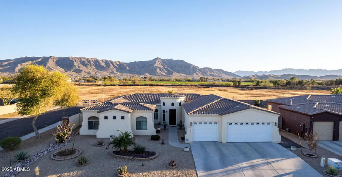 Investments & Upgrades Exceeding $200,000.00. (Assumable existing loan for Eligible/Qualified VA buyer at 2.25%) All offers welcomed! Captivating views of South Mountain and memorable sunsets! Welcome to Estates at Sierra Vista! Nestled in a prestigious community, this home backs up to a long-time established commercial nursery, offering unobstructed South Mountain views. Ranch style split 4-bedroom, 2.5-bath home offers over 3,400 sq. ft. of living space, a 4-car tandem garage, and sits on a massive 13,000 sq. ft. corner lot. This property has been meticulously designed with attention to detail. The backyard is a true entertainer's paradise, featuring a pristine pebble-tech lap pool, and low-maintenance synthetic grass. Enjoy the mister system, custom gazebo, extended patio, completed landscape, accent lighting, and RV gate, making this an ideal space for outdoor gatherings, providing exceptional features to meet all your family needs. Additionally, with fresh interior and exterior paint, and new flooring throughout, the home is move-in ready for immediate enjoyment.