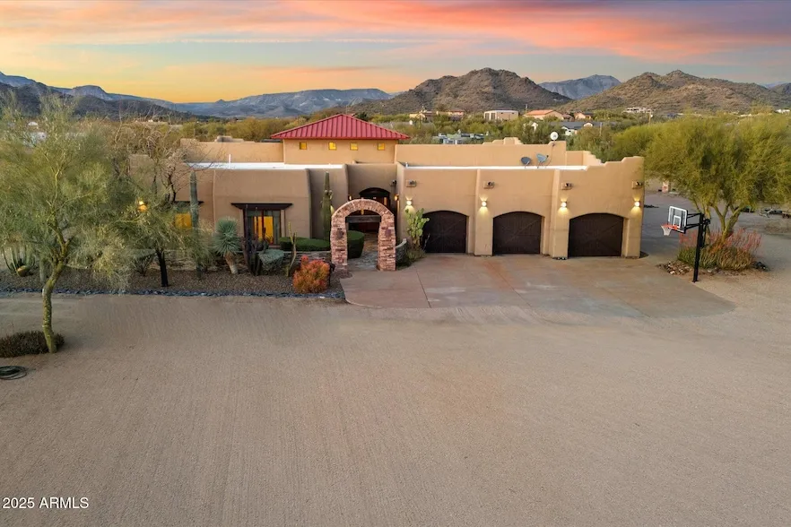 Experience the ultimate horse lover's retreat! This expansive home sits on 2.5 acres with 5-bedrooms, an office, and 4.5 baths. This home blends comfort and convenience with stunning mountain views. Perfect for equestrian enthusiasts, the property has horse stalls, riding area, and is just a short walk to trails for hiking, walking, and horseback riding. The expansive grounds contain a tack barn and storage areas. Inside, enjoy soaring ceilings, a gourmet kitchen with dual dishwashers and a 48-inch gas range, plus 2 laundry rooms! Entertainment is a breeze with a covered patio, heated pool, hot tub and ample parking for vehicles and RVs. Enjoy the charm and privacy of Cave Creek while being minutes from Dove Valley Golf Course, local eats and national retailers. Welcome home! This beautiful home also has:* 22' ceilings in the Foyer, Living Room, and Kitchen with beautiful wood beam ceilings. * Slate flooring that has custom wood inlays* 3 gas fireplaces inside the home (foyer, primary suite, and living room)* Outdoor fireplace* Heated pool + Hot tub with water feature* Primary shower is a true spa like experience with rain shower head, body sprayers, and standard shower heads.* Primary bathtub is jetted* Primary bathroom has separate sinks with vanities and a flex space with a sink that could be a coffee or bar area.* Primary Suite is massive with access to the outdoor covered patio and large walk-in closet.* All bedrooms and the office are generous in size.* Property has natural gas. * Property has city water.* Kitchen has granite counter tops, also hand hammered copper countertop on the kitchen bar with custom cacti supports and built in wine storage* Stove is a 6 burner Kitchen Aid range with a grill* Home has 8 covered horse pens, riding area, insulated shop and tack barn + more* RV pad with hook ups.* 3 car attached garage can fit dually trucks* Custom home that has been lovingly and meticulously maintained.* The sunsets off the back patio are not to be missed.* Oversized windows throughout the home add beautiful light and amazing vantage points of the spectacular mountain views. Just down the street (within a mile) of:Dove Valley Ranch Golf Club, Sprouts, Lowes, Home Depot, Mod Pizza, Fry's, Starbucks, and so much more...