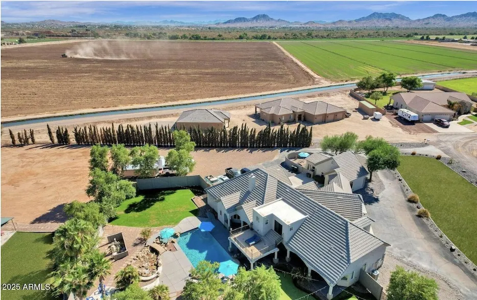 Entertainer's Dream Custom Home + Casita on a 2.3-acre lot! Main house is 3,609 SF 4BR/ 3 full bath + 2 half bath. This horse property features a huge 1,800 SF barn, massive heated pool, and private well. Upstairs is a game room that leads to a rooftop deck. The chef's kitchen offers granite countertops and dual ovens. The primary suite is on the main level with backyard access and a spa-like ensuite. Fall in love with the 1,000 SF casita featuring a full living area, kitchen, bedroom, gym, bathroom and fenced yard. Enjoy a sparkling pool, waterfall feature, LED lights, spa, fire pit, and covered patio. Horse lovers will appreciate 4 stalls, tack room, beautiful stables, and horse privileges. Includes a storage shed and ample space to roam. This is a one of a kind and must see property.