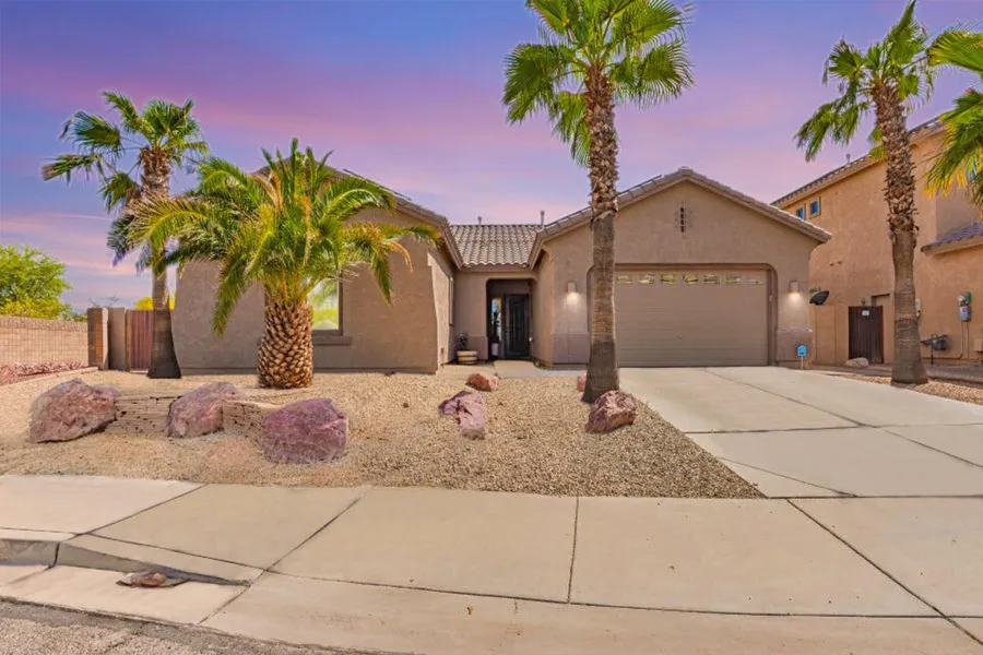 Charming 3-bedroom home located in Dysart Ranch on a desirable corner lot w/ additional office/den. Displaying a 2-car garage w/ workshop, built in cabinets, an RV gate & desert landscape. 2 NEW AC units installed in 2022, new water filtration system & water heater. You'll love the charming interior with travertine tiles throughout, plenty of natural light. Enjoy a welcoming living/dining room ideal for entertaining. The family room includes a cozy fireplace. The eat-in kitchen offers wood cabinetry, SS appliances, an island & w/ a breakfast bar. The main bedroom hosts a private bathroom w/ dual sinks, new shower with soaking tub, & a walk-in closet. The backyard offers spacious patio, pavers, a sparkling pool with jacuzzi & ample space to relax or entertain. Don't miss the opportunity!!