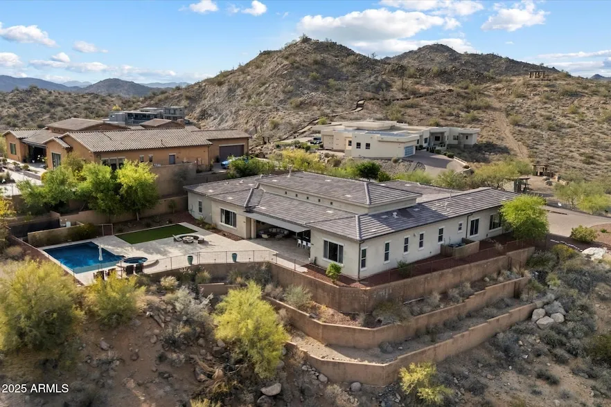 Major Price Reduction on Exquisite Luxury Estate in Gold Mountain Preserve - Nestled within the gated luxury enclave of Gold Mountain Preserve, this stunning 4,876 sf SINGLE LEVEL luxury estate is perfectly positioned on one of the most sought after lots, offering breathtaking mountain and the preserve desert vistas. Step inside and be captivated by soaring ceilings, elegant architectural details, and a seamless blend of indoor and outdoor living. The five spacious bedrooms each feature en suite bathrooms, ensuring privacy and comfort. The primary suite is a true retreat , with a spa like bath and oversized primary closet. Entertain effortlessly in the gourmet kitchen, outfitted with top of the line SubZero Refrigerator, Wolf Gas Cooktop and Ovens. Custom cabinetry, massive island. The open concept design flows into the expansive living and dining areas, perfect for intimate gatherings o...