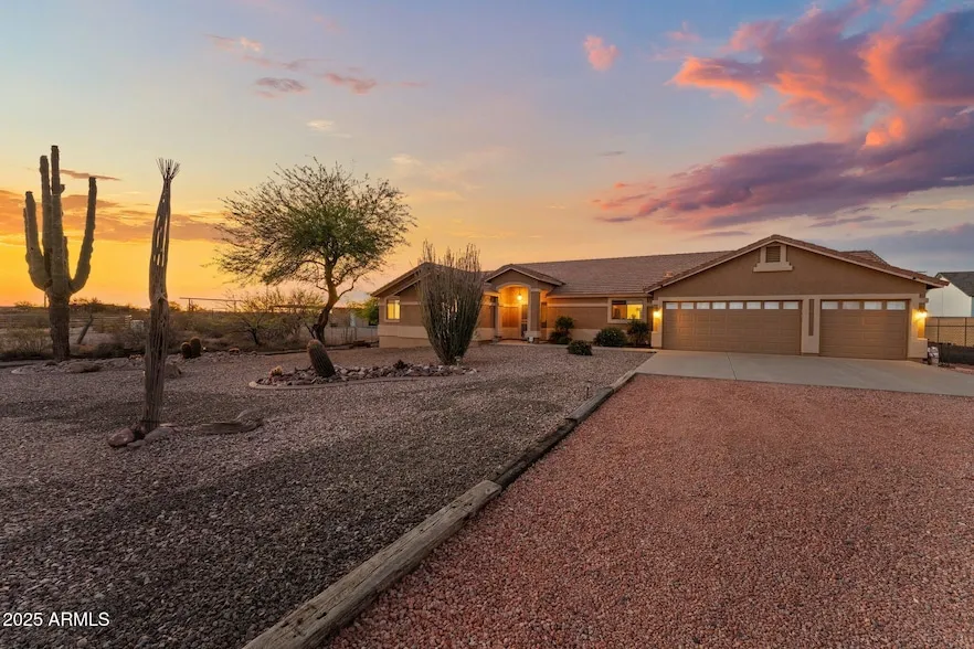 Desert Oasis with Horse Facilities - Ranch-Style Living on 2.5 Acres in Wittmann, AZ! Welcome to your dream ranch! This beautifully maintained 5-bedroom, 3-bathroom home offers the perfect blend of comfort, functionality, and wide-open space on 2.5 fully fenced acres with stunning mountain views and a private well. Located in the heart of horse country in Wittmann, AZ, this property is a true equestrian's paradise. Step inside to discover a spacious, ranch-style layout with a large kitchen featuring granite countertops, ample cabinetry, a pantry, updated appliances, and an owned water softener for extra convenience. Enjoy family time or entertain with ease, both indoors and out. The outdoor living space is where this home really shines. Relax under the expansive covered patios or fire up the built-in outdoor kitchen while soaking in the peaceful desert landscape. The extended-length 3-car garage provides plenty of space for vehicles, toys, and storage. RV hook up with plenty of room for parking. For the horse lover, the property is fully equipped with a round pen, 4 covered pens, turnouts, hay shed, tack room, and automatic waterers. Large workshop/storage shed offers plenty of room for hobbies or could be converted to a guest quarters.You'll also enjoy miles of desert trails just saddle up and ride out! Private well and septic system = low utility costs! Mature, thoughtfully designed landscaping with a drip irrigation system and artificial turf (no mowing) and a putting green! Garden area with fruit trees and dog run. Sellers replaced the well pump and HVAC in 2024. Well Pump now has a 4 year warranty. Room to roam, grow, or simply unwind under the Arizona skies. Whether you're looking for a horse-ready homestead, or just want to enjoy peaceful desert living, this Wittmann gem has it all. Don't miss the opportunity to make this special property your own!