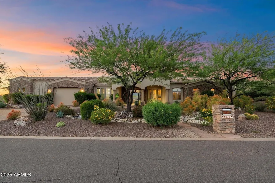 This North Scottsdale custom estate sits on a private corner lot with north-south exposure and no HOA; a rare blend of luxury & privacy. This gorgeous home features 4 en-suite bedrooms, game room, plus a second master w/separate living room & kitchen(ideal for multi-gen living or guests). Through the iron door entry the columned foyer sets the tone with elegant arches, tray ceilings, and a striking butt-glass window that frames a true work of art: the Continental Mountains. The skylight-filled great room is where all the action happens, connecting to an entertainer's kitchen outfitted with Sub-Zero, Wolf, and Asko appliances, an oversized granite island + bar height breakfast bar, alder cabinetry, a reverse osmosis system, and a walk-in pantry. It flows into a full wet bar, stone fireplace, and formal dining room with a wine chiller and butler's pantry.The primary suite offers a private ...