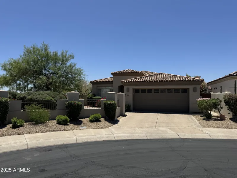 Enjoy breathtaking mountain views, a welcoming courtyard, and a peaceful backyard—perfect for taking in the sunrise. This home has a wide open floor plan featuring separate eat in kitchen, great room with gas fireplace, formal dining area and living room. Office/den easily converted to a third bedroom. The kitchen boasts granite countertops and brand-new appliances and stylish tile flooring throughout. Elegant shutters enhance the home's ambiance, adding a refined touch to every room. The property is within walking distance to The Princess Resort, TPC golf courses, and other fine dining/entertainment. Scottsdale Sports complex has miles of trails and right across the street.
